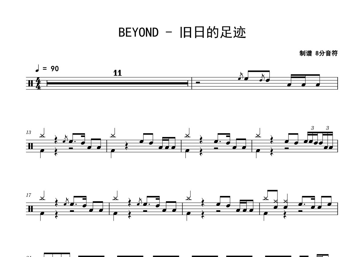 Beyond《旧日的足迹》鼓谱 - 架子鼓谱