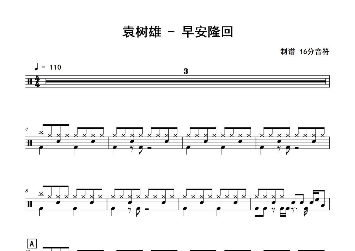 袁树维《早安隆回》鼓谱 - 架子鼓谱