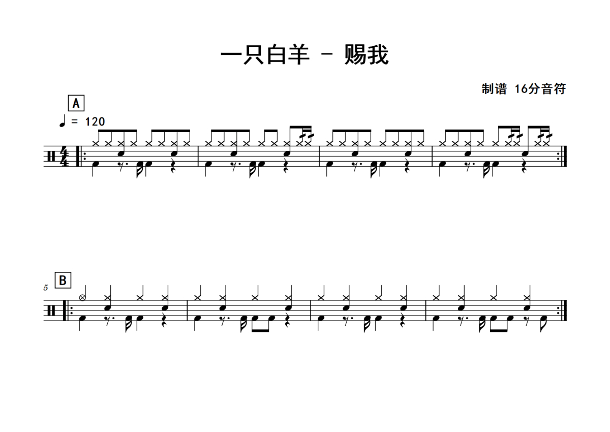 一只白羊《赐我》鼓谱 - 架子鼓谱