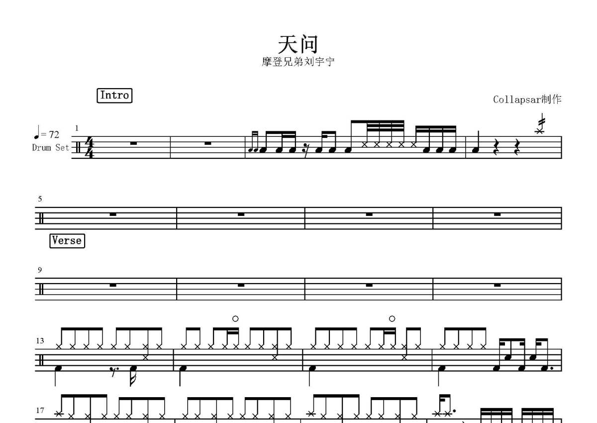 摩登兄弟刘宇宁《天问》鼓谱 - 架子鼓谱