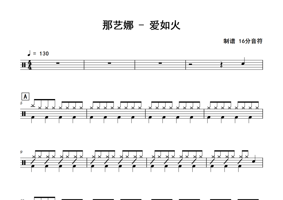 那艺娜《爱如火》鼓谱 - 架子鼓谱