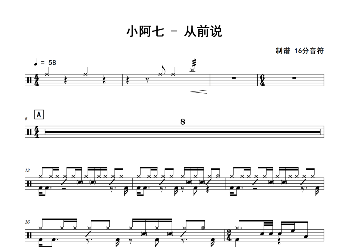 小阿七《从前说》鼓谱 - 架子鼓谱
