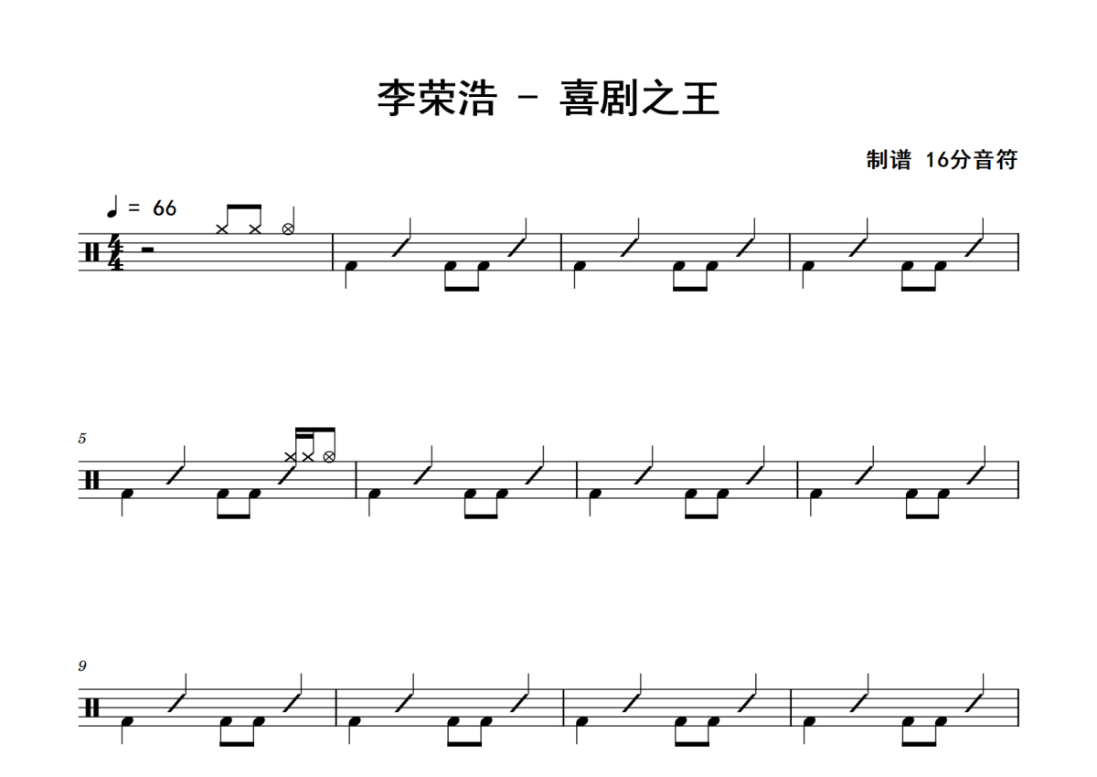 李荣浩《喜剧之王》鼓谱 - 架子鼓谱