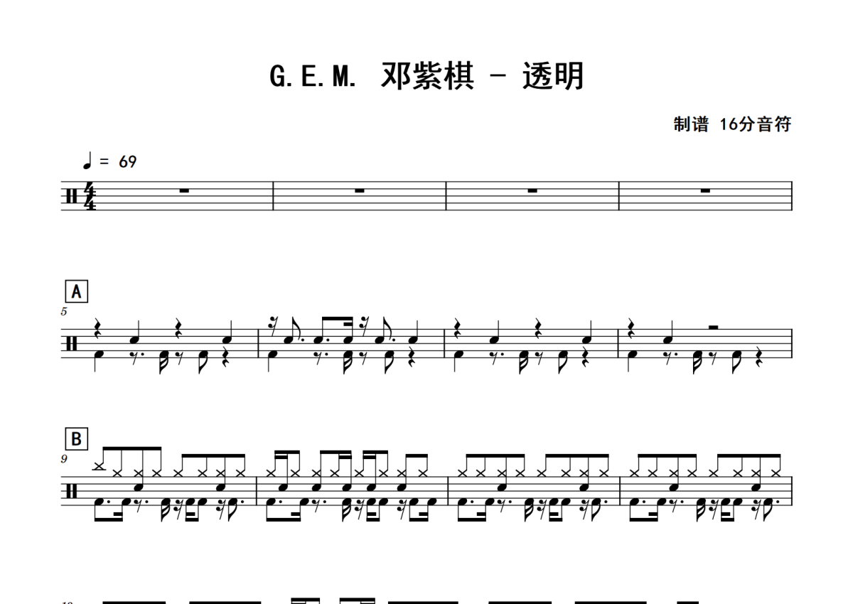 邓紫棋《透明》鼓谱 - 架子鼓谱
