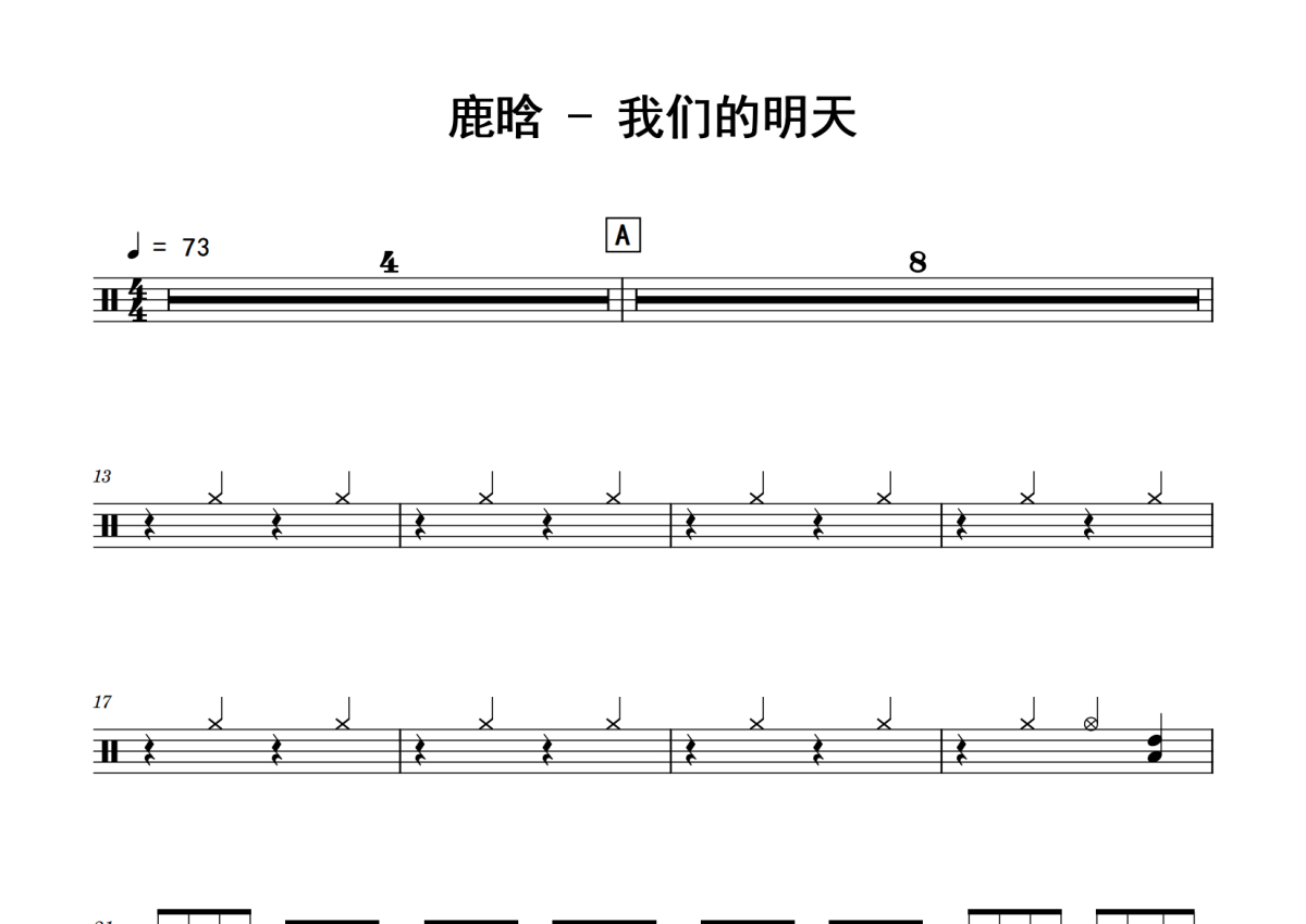 鹿晗《我们的明天》鼓谱 - 架子鼓谱