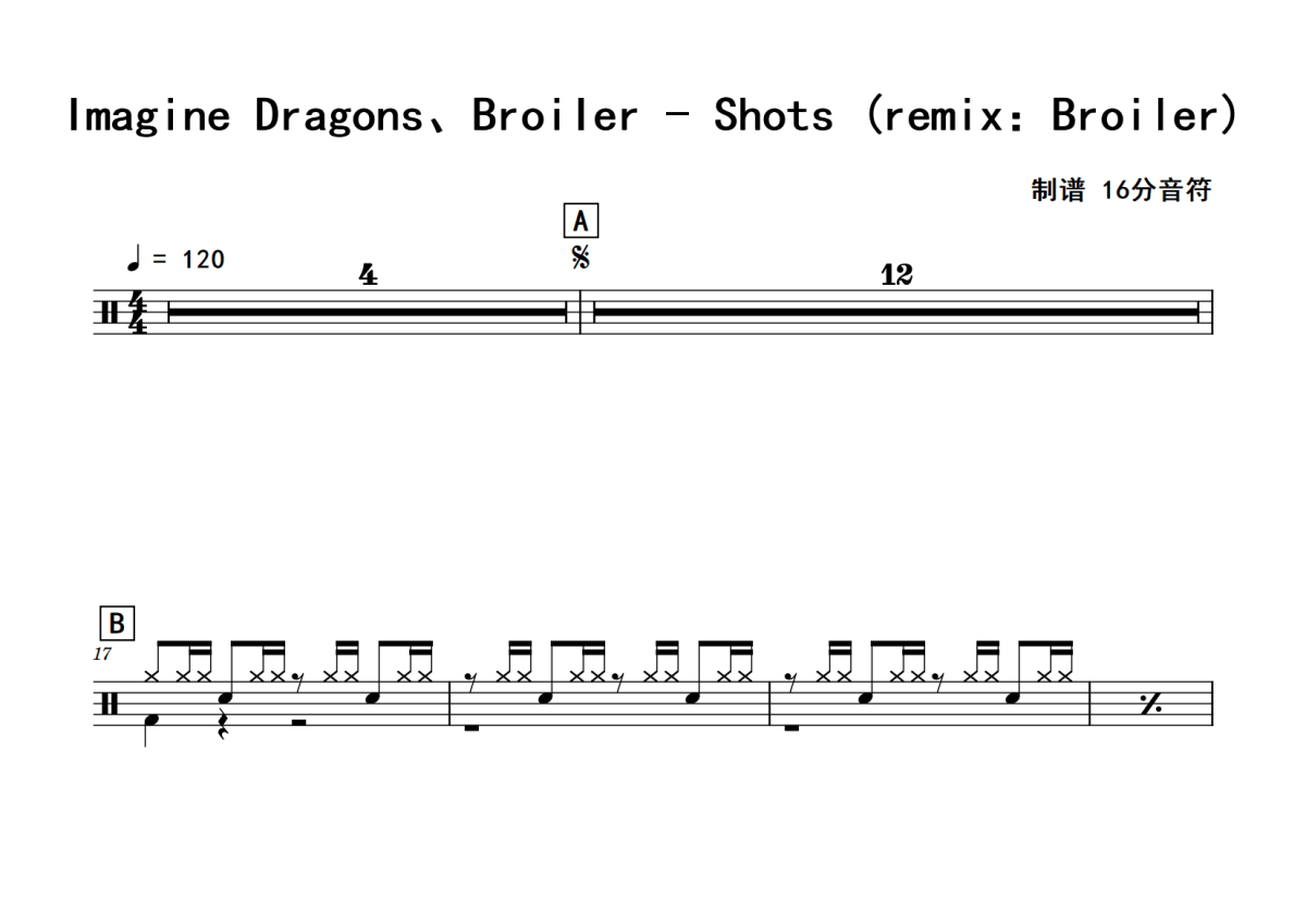 Imagine_Dragons、Broiler《Shots_(remix:Broiler)》鼓谱 - 架子鼓谱