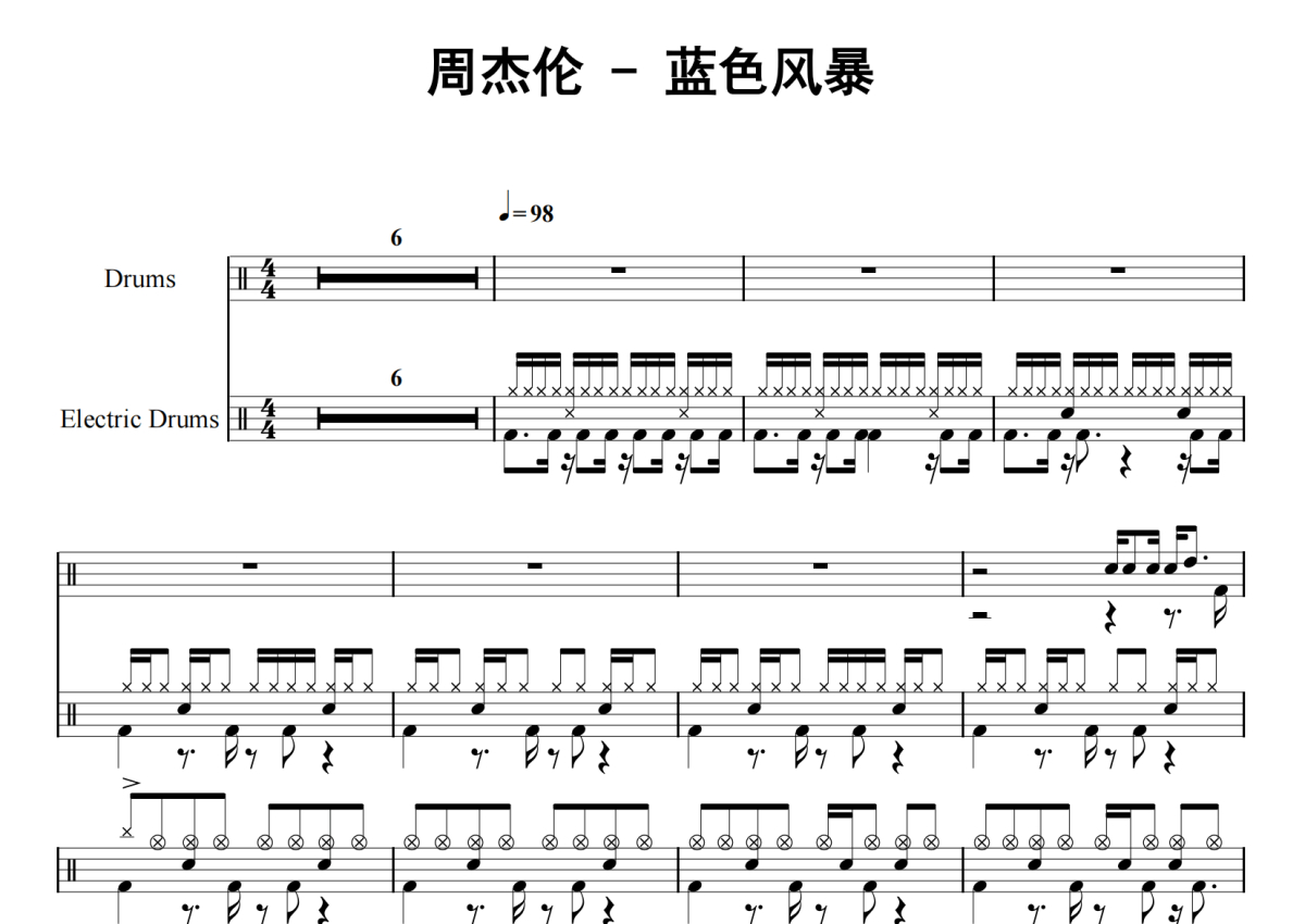 周杰伦《蓝色风暴》鼓谱 - 架子鼓谱