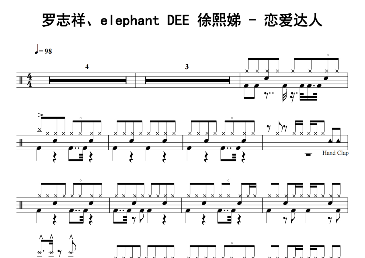 罗志祥、elephant DEE 徐熙娣《恋爱达人》鼓谱 - 架子鼓谱