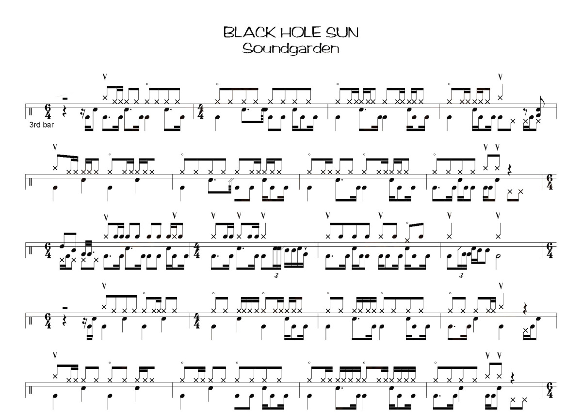 《Black Hole Sun》是Soundgarden演唱的一首歌曲,这份鼓谱共有两张高清图谱,图谱由 @打鼓谱 编配上传,图谱使用五线谱编配,使用这份Black Hole Sun架子鼓谱,你将能够轻松地敲打出这首Soundgarden的Black Hole Sun,快来尝试吧。《Black Hole Sun》是由 Soundgarden演唱的英语歌曲。声音花园乐队(Soundgarden)是克里斯·康奈尔(Chris Cornell)在1989年创建的乐队,为20世纪最有影响力的乐队之一,曾于1997年解散,2011年7月举办了重组后的第一场演出。
