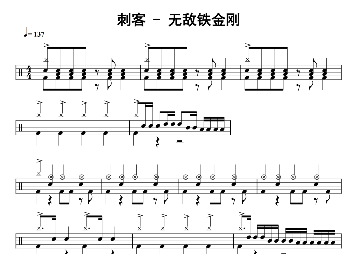 刺客《无敌铁金刚》鼓谱 - 架子鼓谱