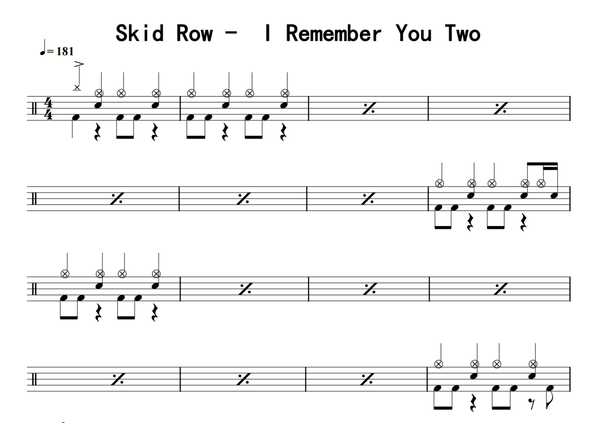 Skid Row《I Remember You Two》鼓谱 - 架子鼓谱