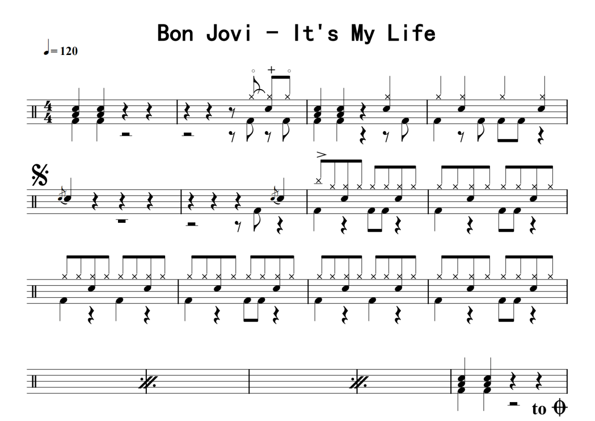 Bon Jovi《It's My Life》鼓谱 - 架子鼓谱
