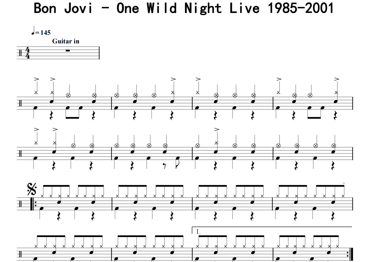 Bon Jovi《One Wild Night Live 1985-2001》鼓谱 - 架子鼓谱