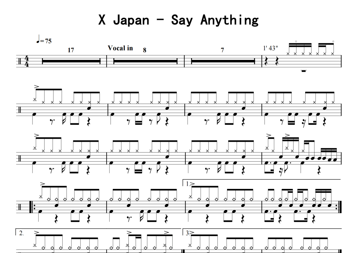 X Japan《Say Anything》鼓谱 - 架子鼓谱