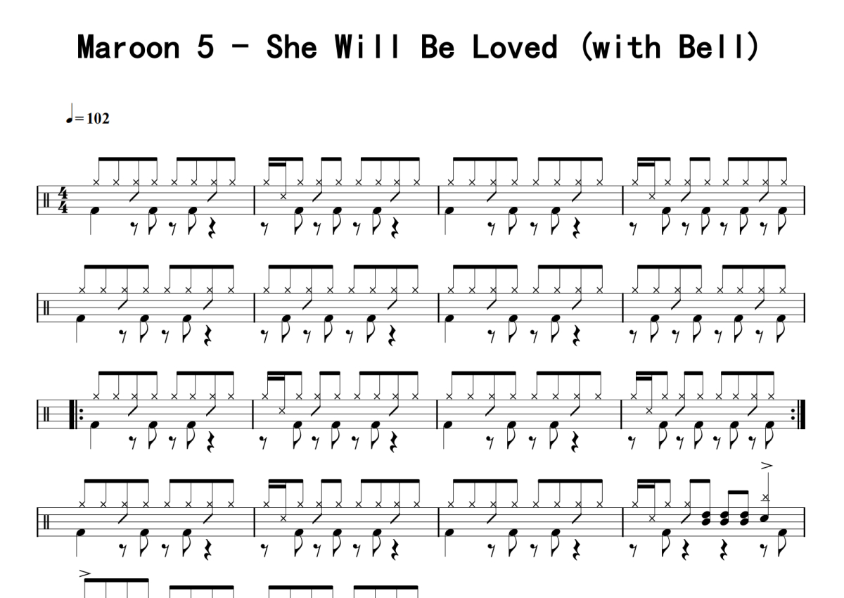 Maroon 5《She Will Be Loved (with Bell)》鼓谱 - 架子鼓谱