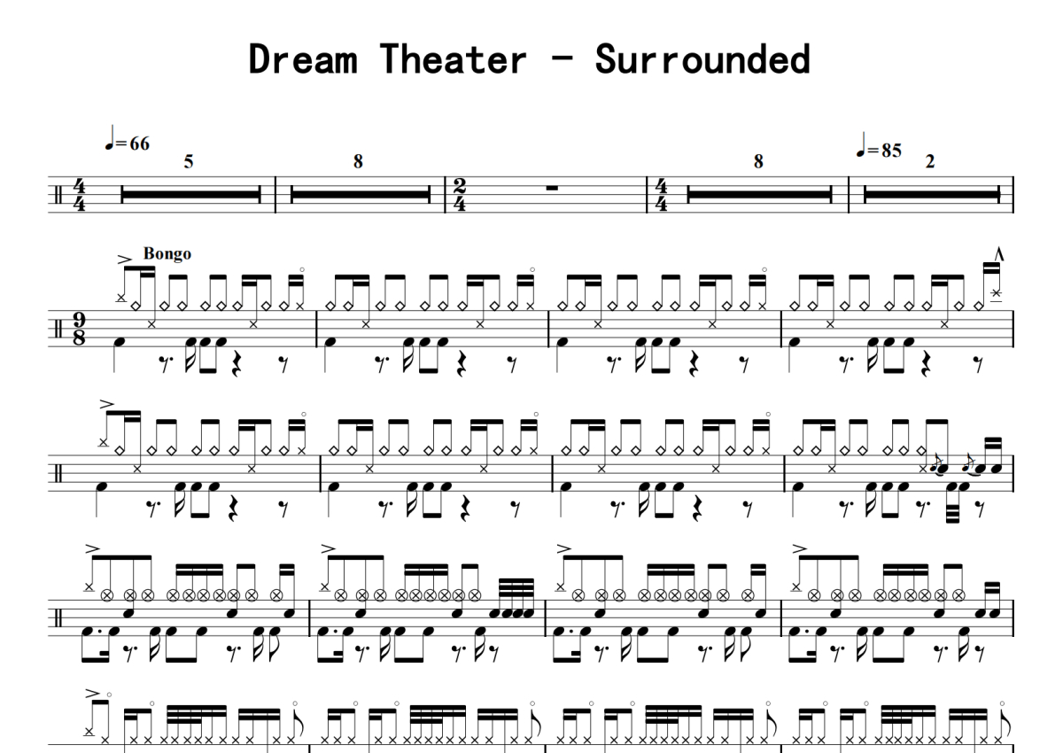 Dream Theater《Surrounded》鼓谱 - 架子鼓谱