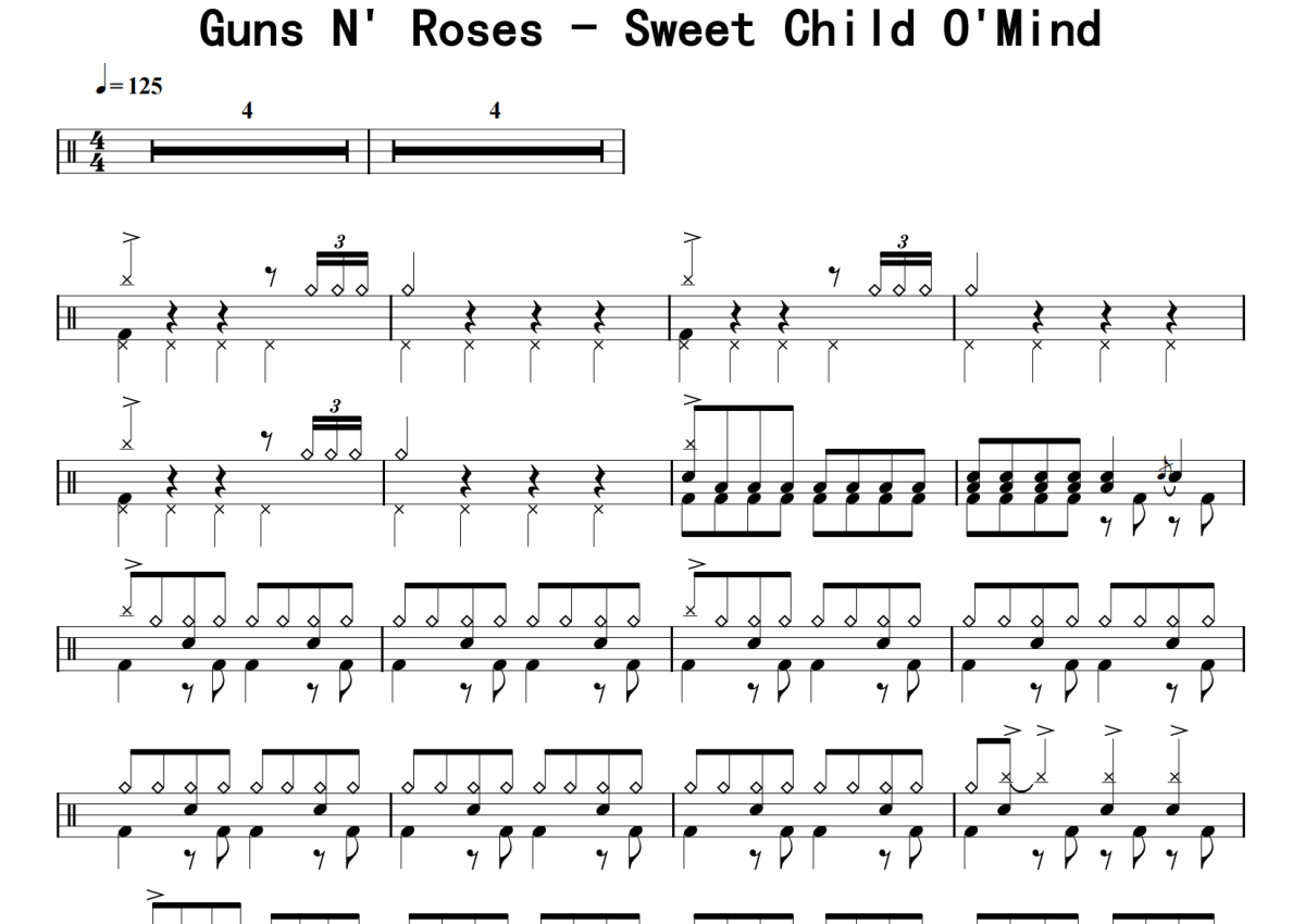 Guns N' Roses《Sweet Child O'Mind》鼓谱 - 架子鼓谱