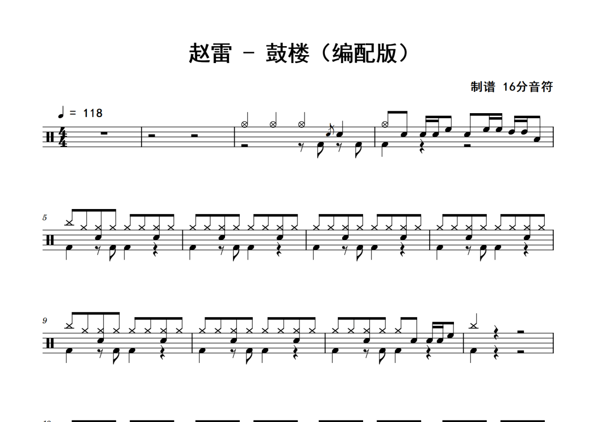 赵雷《鼓楼》鼓谱 - 架子鼓谱 - 编配版