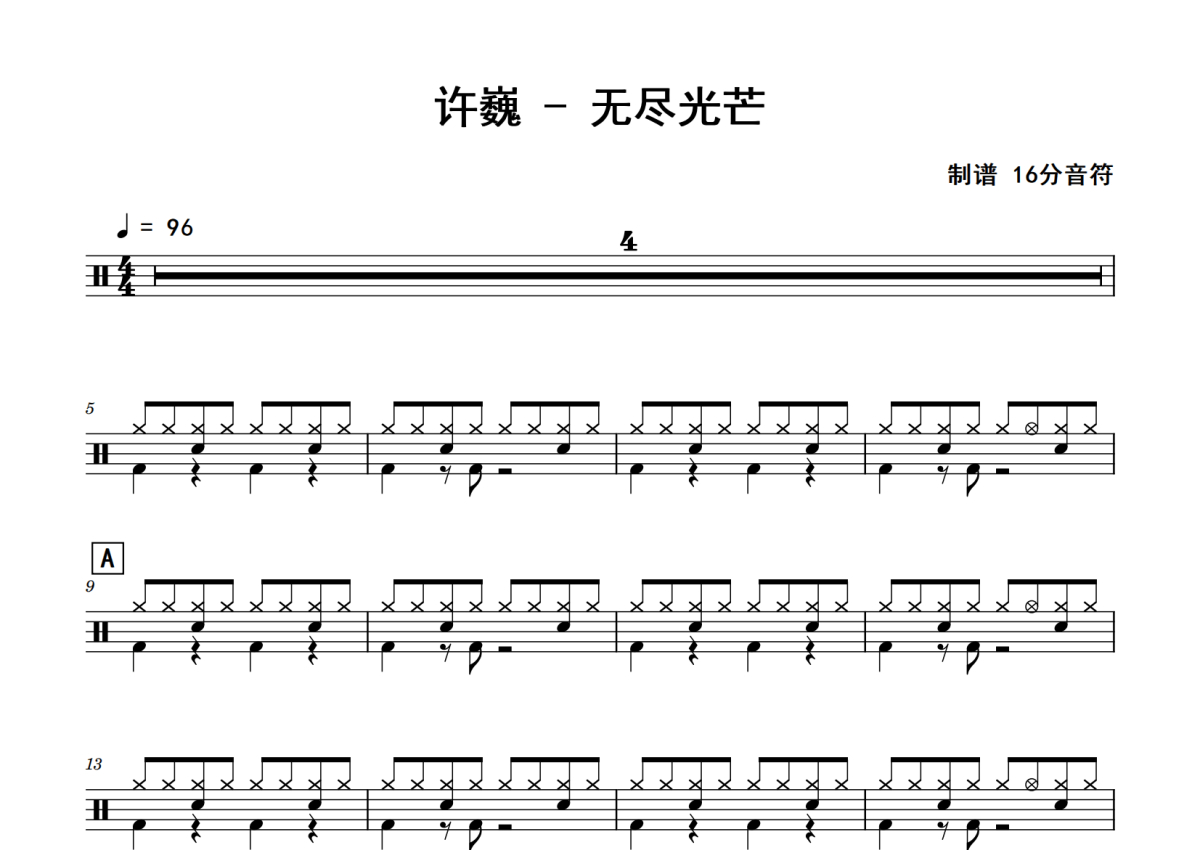 许巍《无尽光芒》鼓谱 - 架子鼓谱