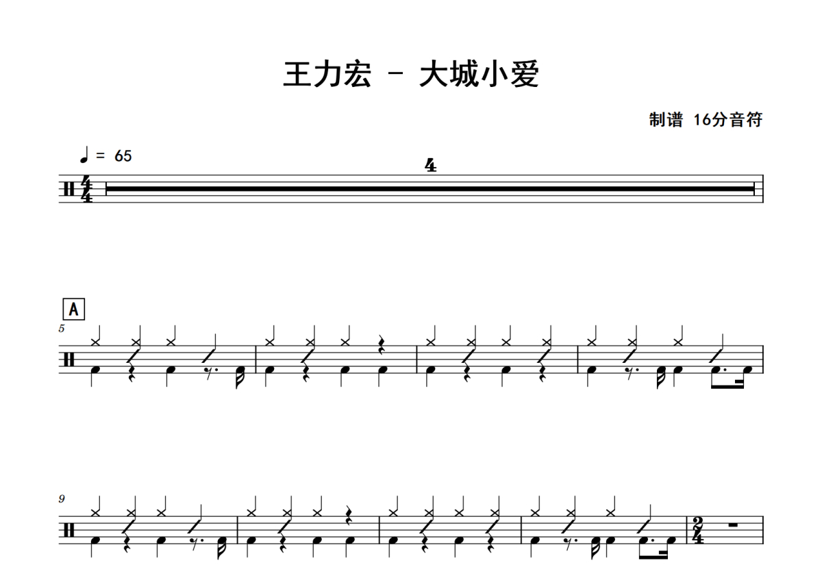 王力宏《大城小爱》鼓谱 - 架子鼓谱