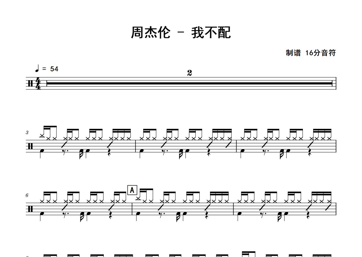 周杰伦《我不配》鼓谱 - 架子鼓谱