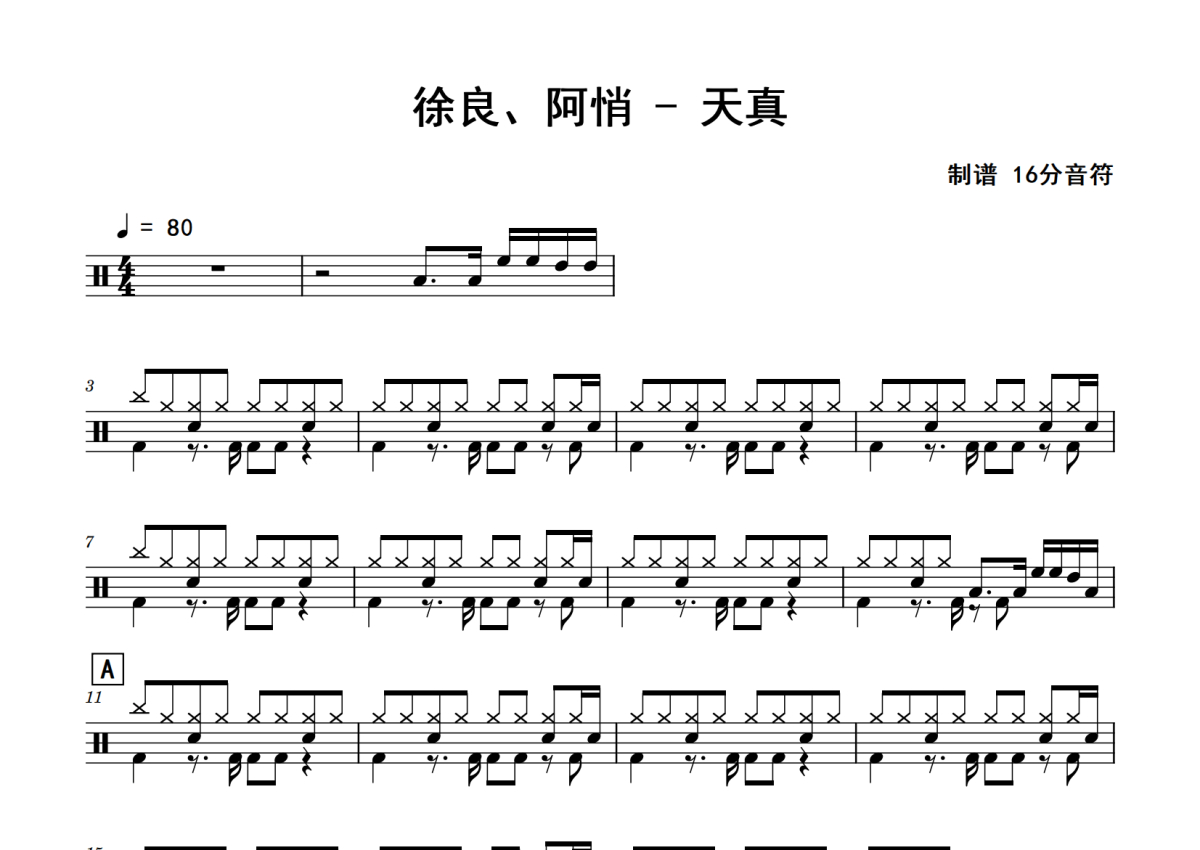 徐良、阿悄《天真》鼓谱 - 架子鼓谱