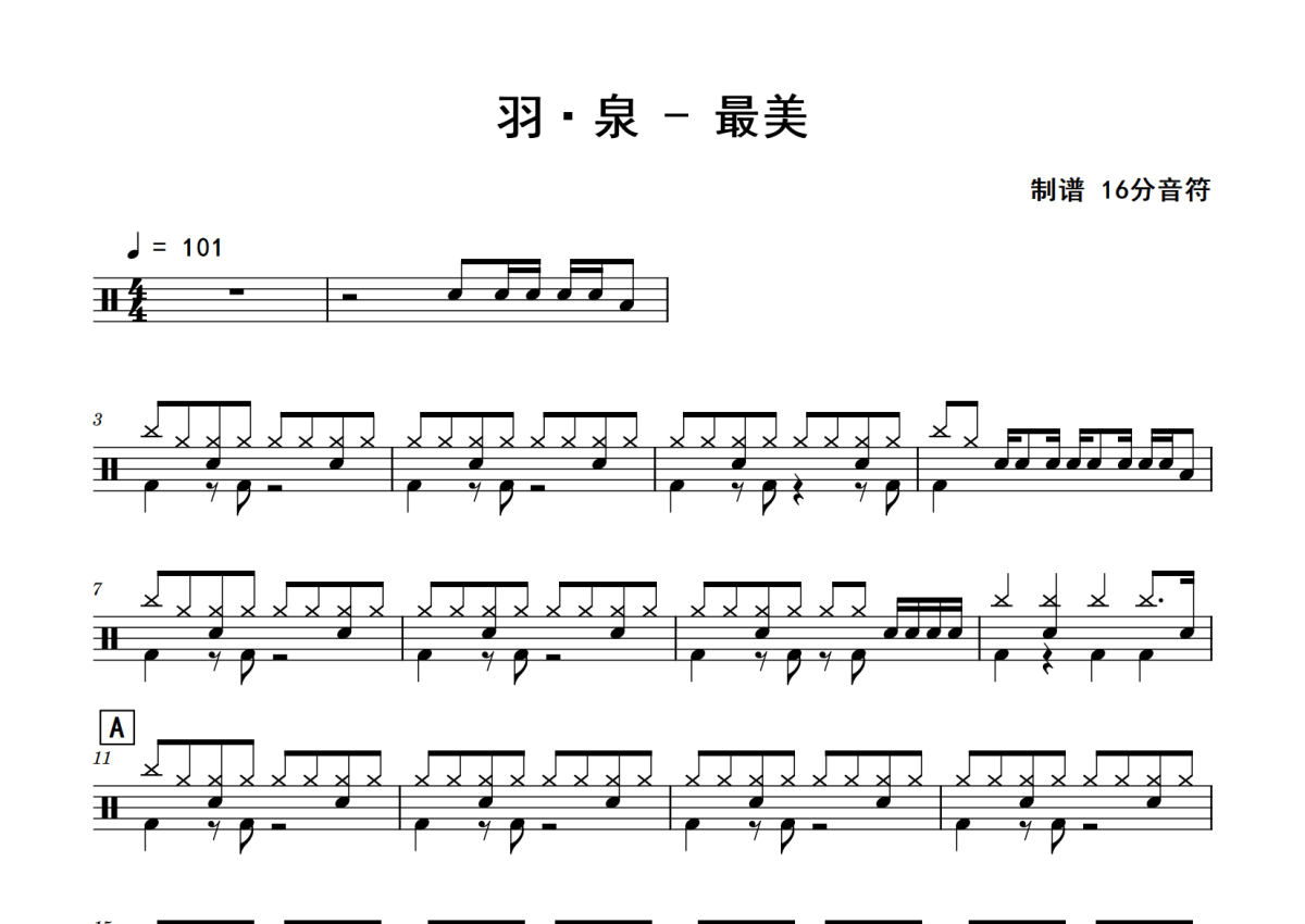 羽泉《最美》鼓谱 - 架子鼓谱