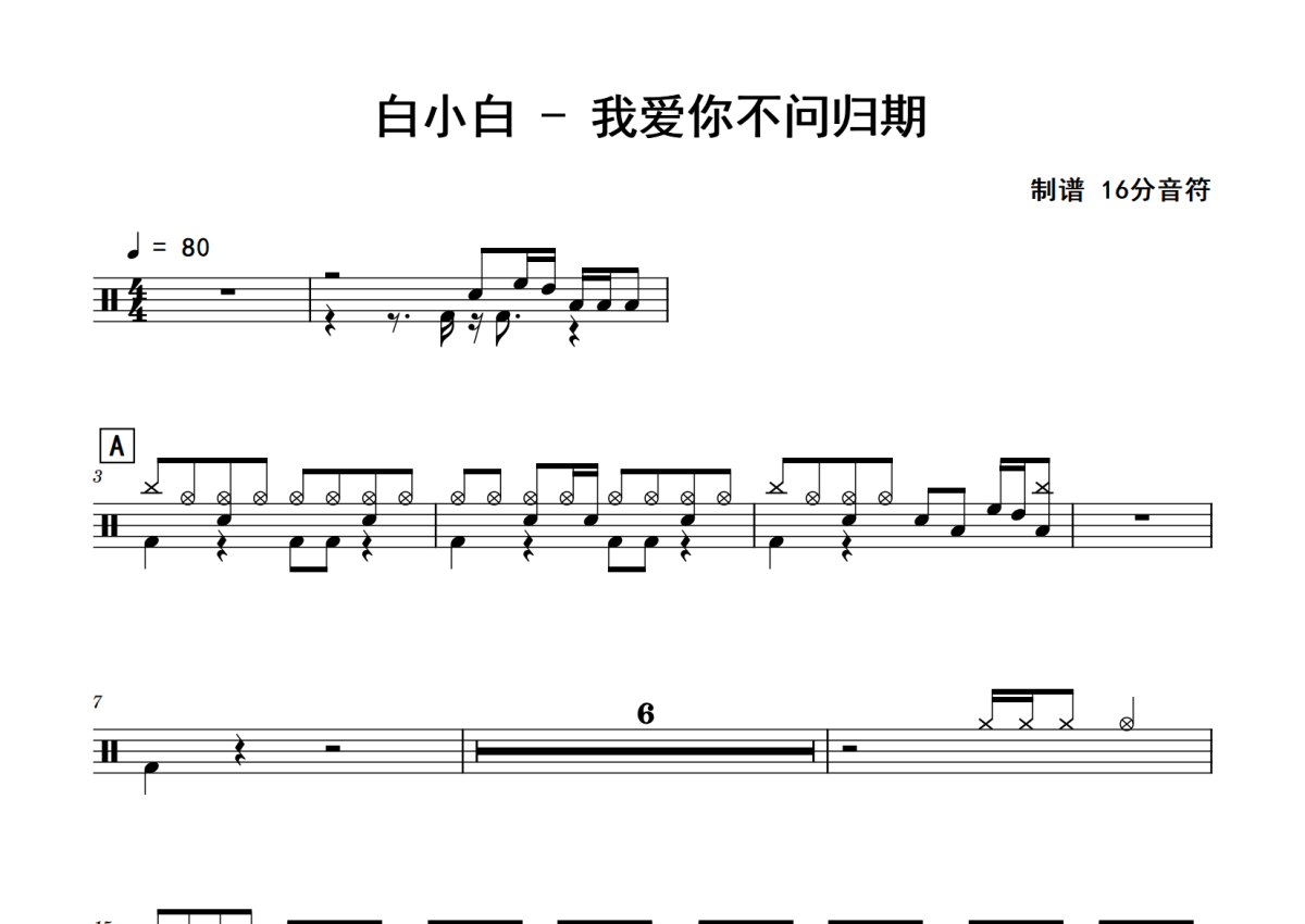 白小白《我爱你不问归期》鼓谱 - 架子鼓谱