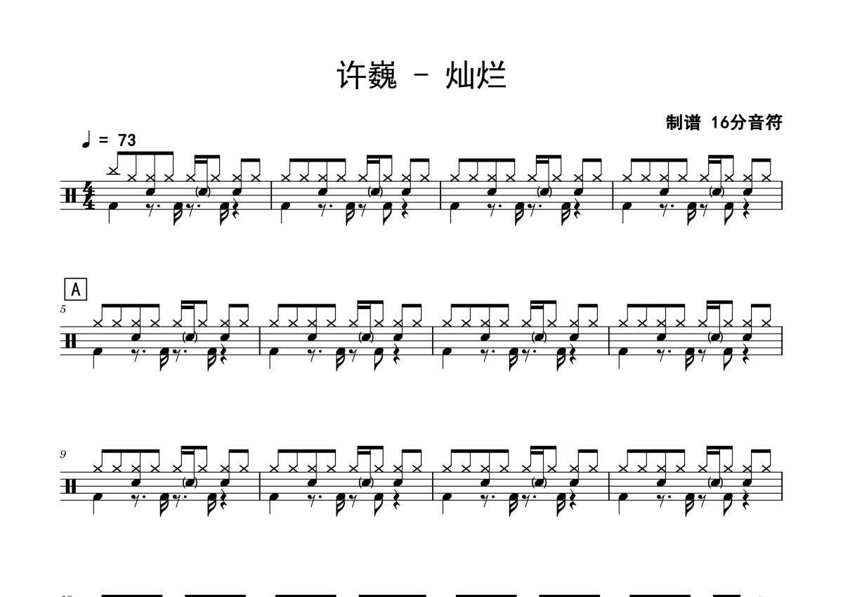 许巍《灿烂》鼓谱 - 架子鼓谱