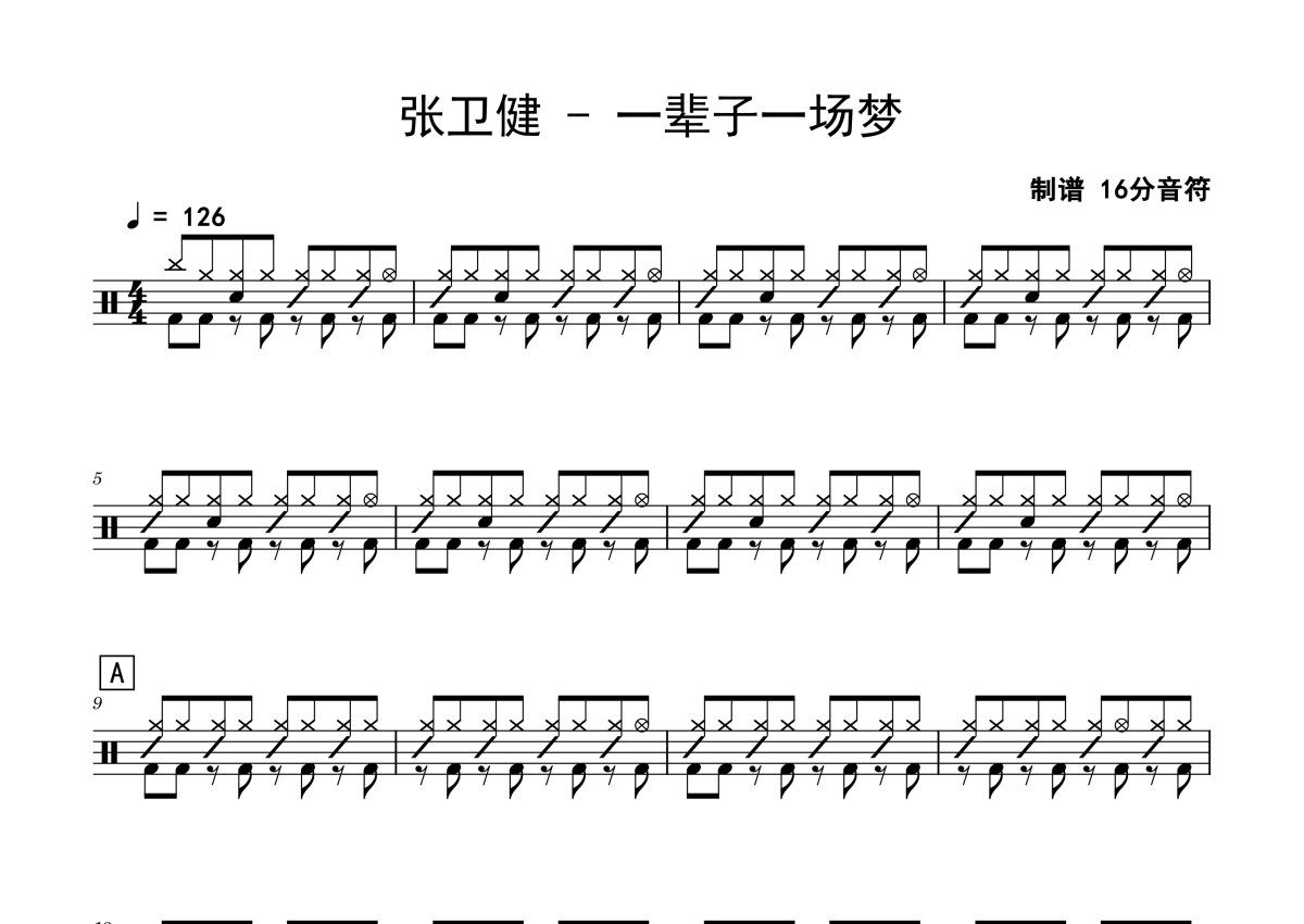 张卫健《一辈子一场梦》鼓谱 - 架子鼓谱