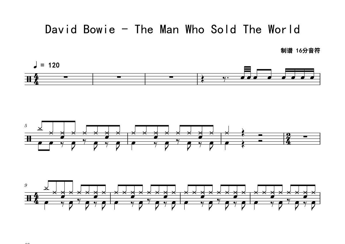 David Bowie《The Man Who Sold The World》鼓谱 - 架子鼓谱