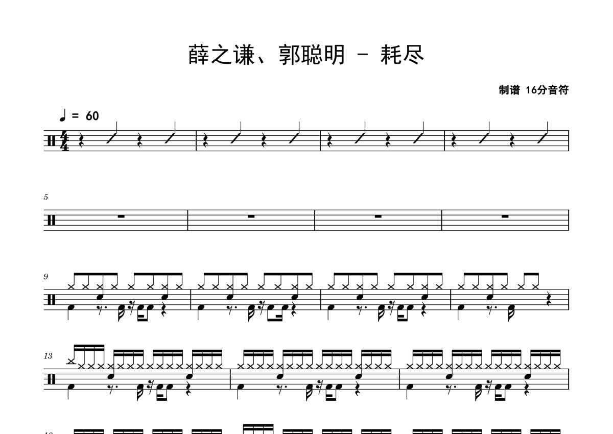 薛之谦、郭聪明《耗尽》鼓谱 - 架子鼓谱