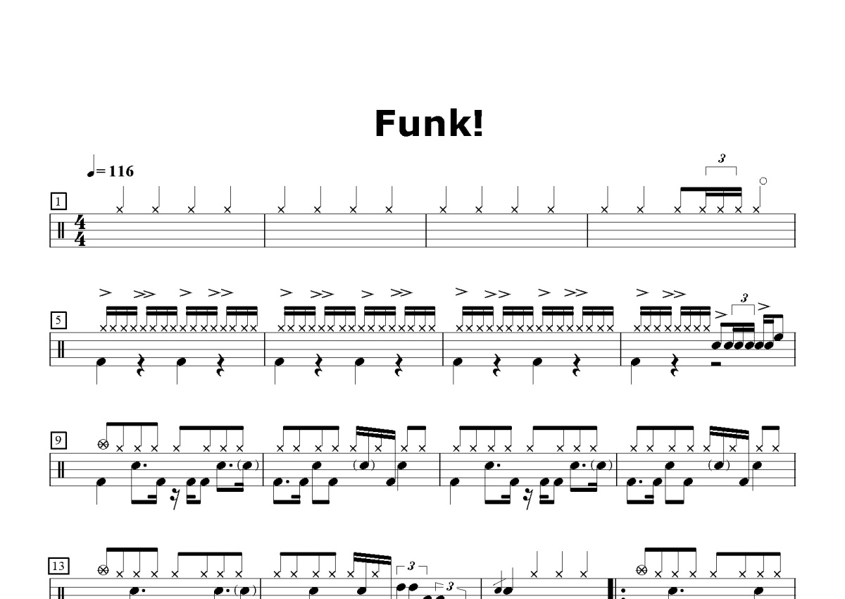 《FUNK!》是董俊杰演唱的一首歌曲,这份鼓谱共有四张高清图谱,图谱由 @打鼓谱 编配上传,图谱使用五线谱编配,使用这份FUNK!架子鼓谱,你将能够轻松地敲打出这首董俊杰的FUNK!,快来尝试吧。本鼓谱由诺爱用户分享!。