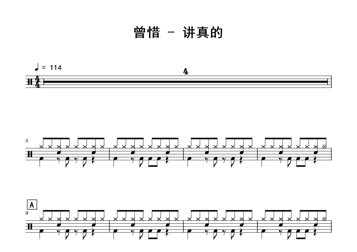 曾惜《讲真的》鼓谱 - 架子鼓谱
