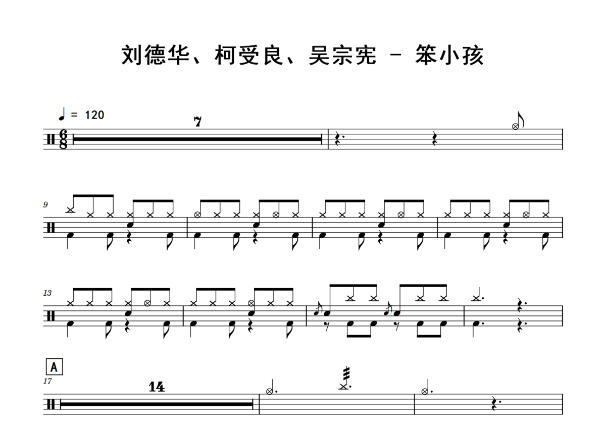 刘德华/柯受良/吴宗宪《笨小孩》鼓谱 - 架子鼓谱