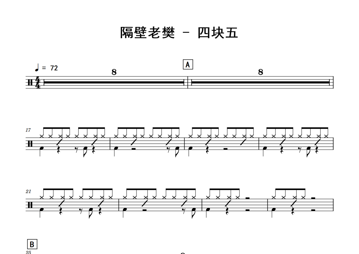 隔壁老樊《四块五》鼓谱 - 架子鼓谱