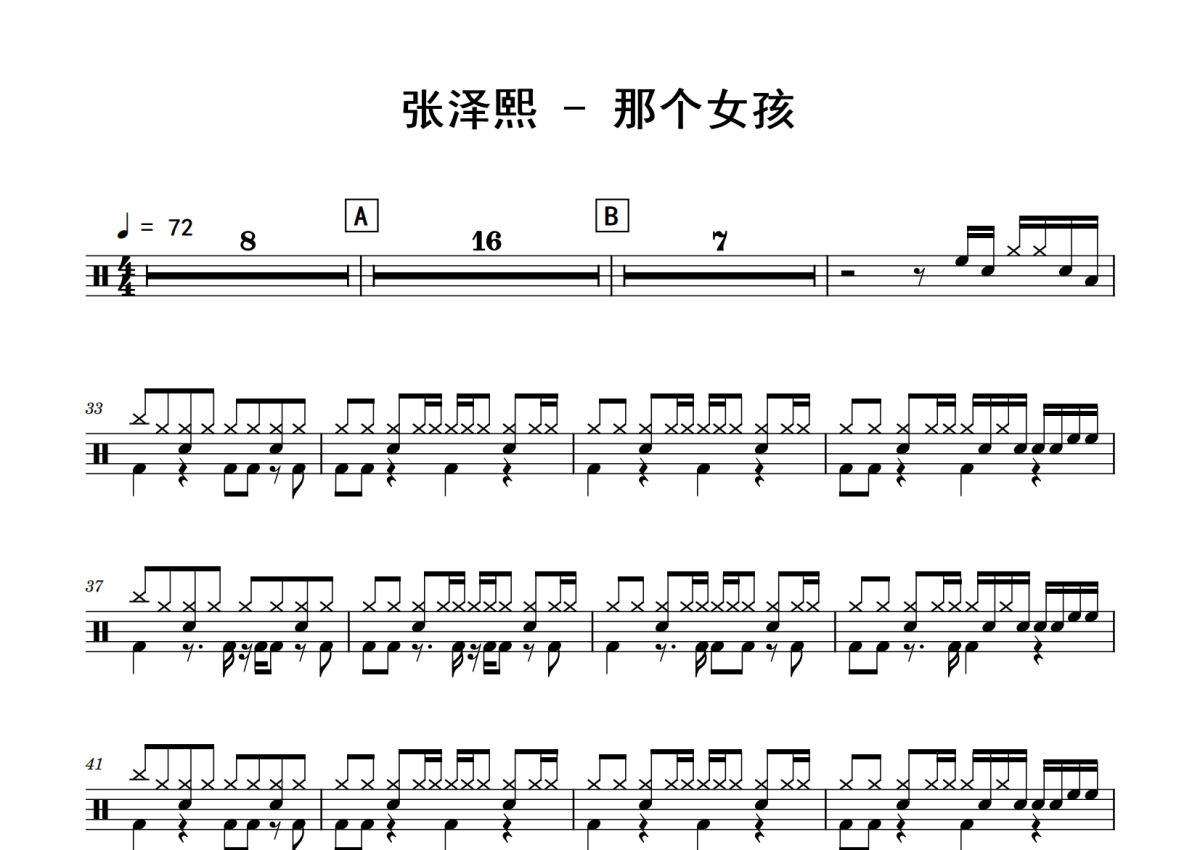 张泽熙《那个女孩》鼓谱 - 架子鼓谱