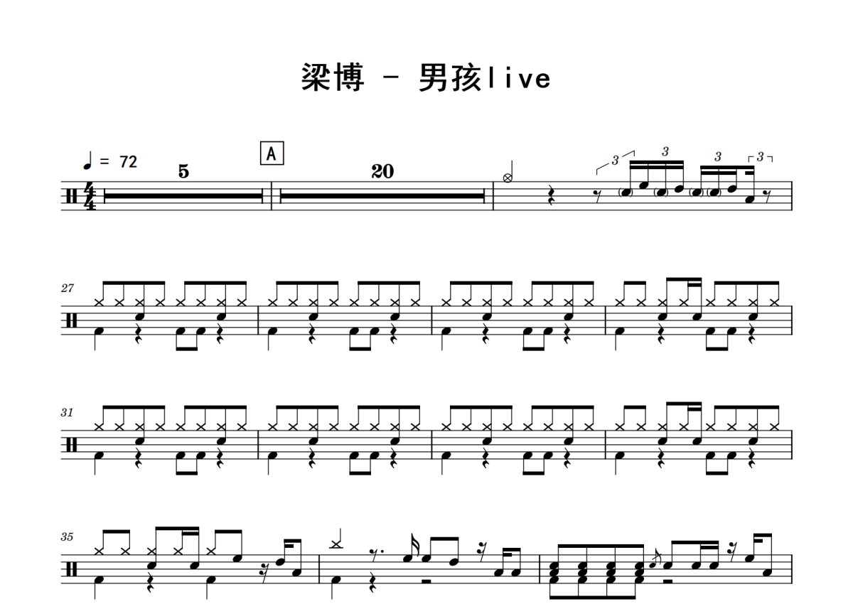 梁博《男孩》鼓谱 - 架子鼓谱 - live