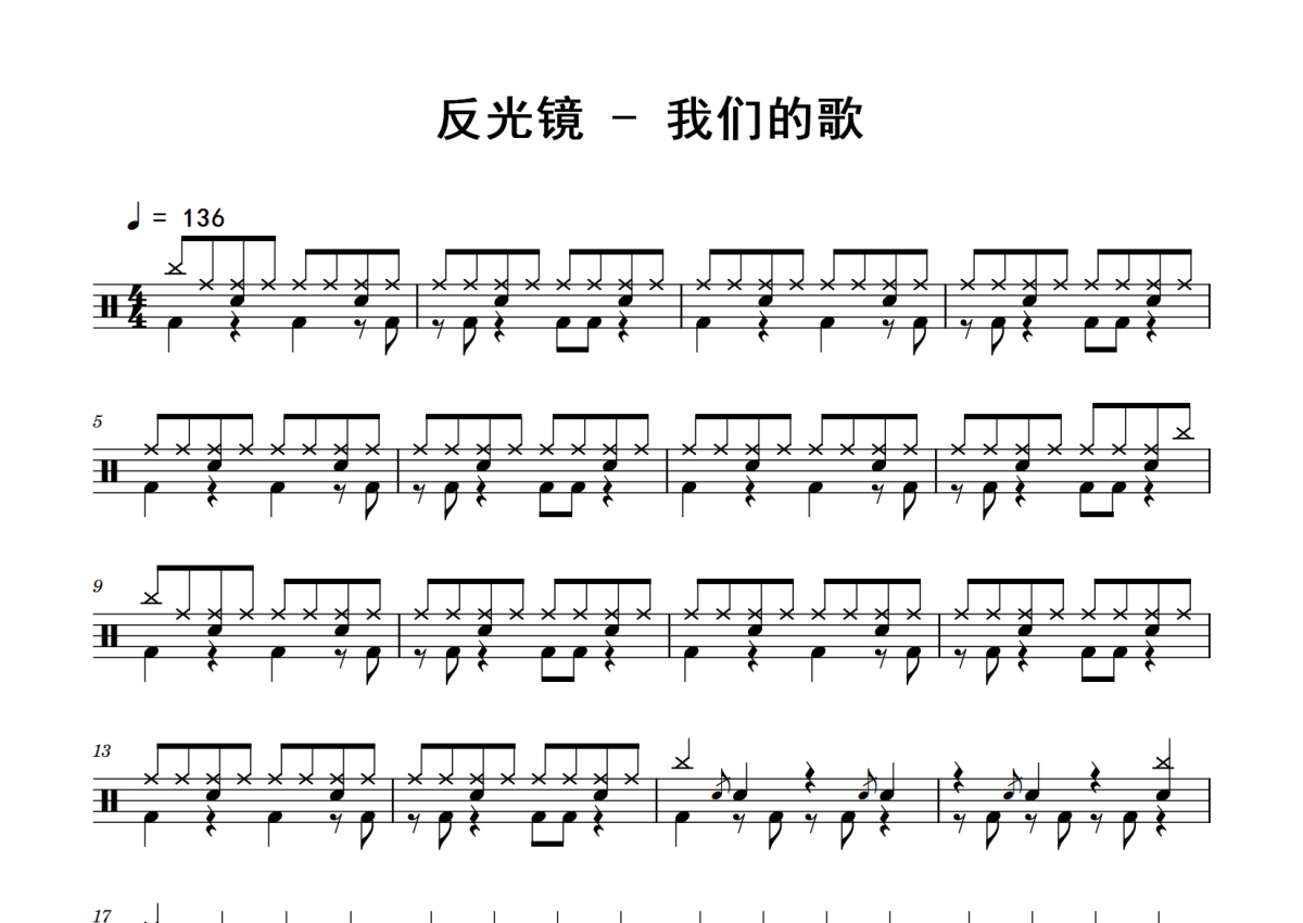 反光镜《我们的歌》鼓谱 - 架子鼓谱