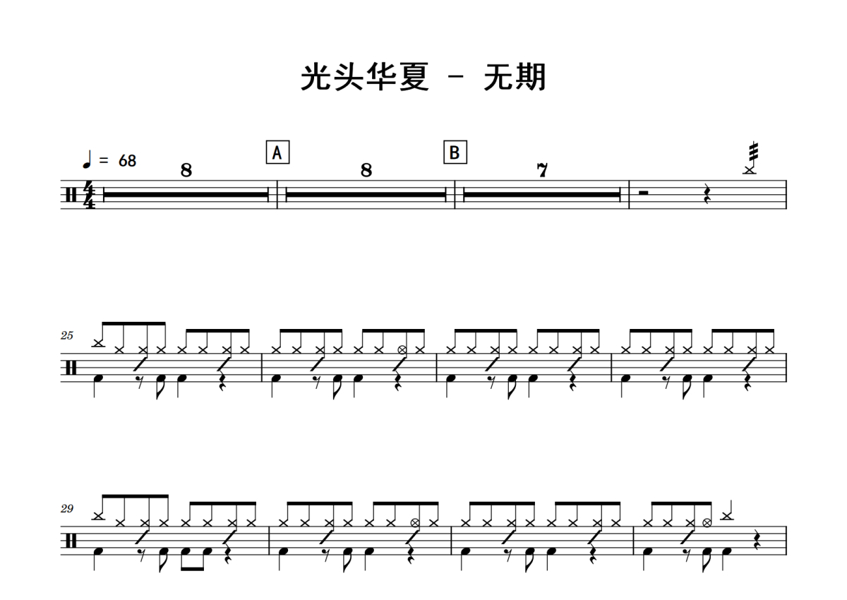 光头华夏《无期》鼓谱 - 架子鼓谱
