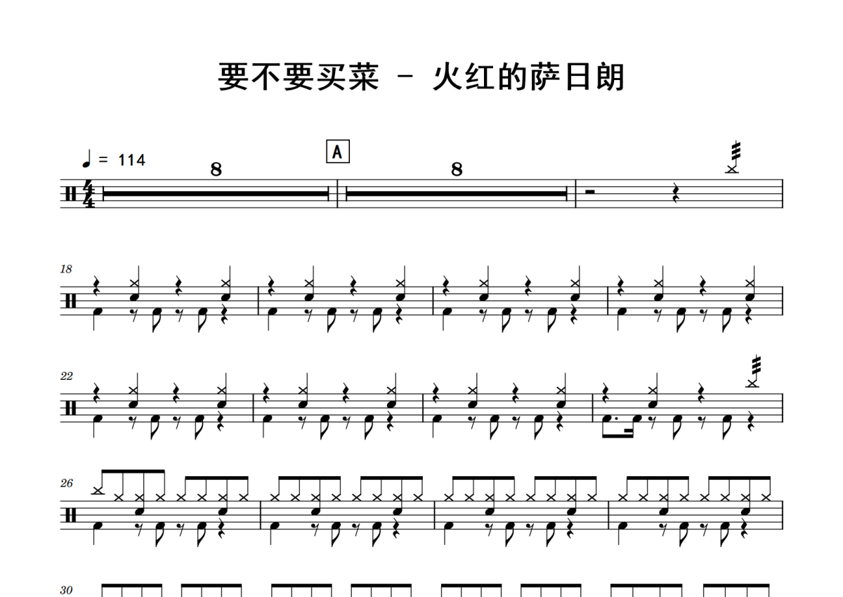 要不要买菜《火红的萨日朗》鼓谱 - 架子鼓谱