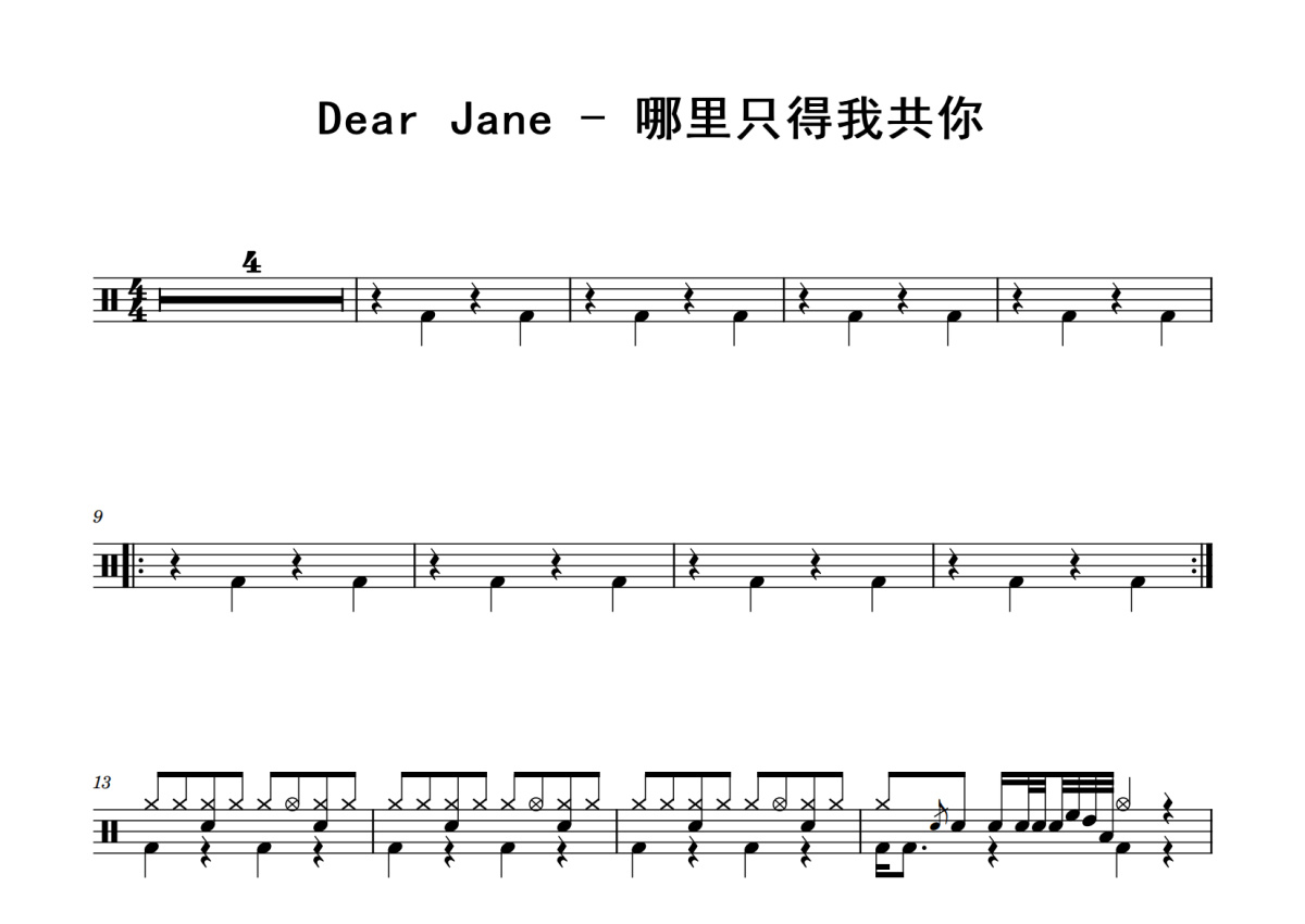 Dear jane《哪里只得我共你》鼓谱 - 架子鼓谱