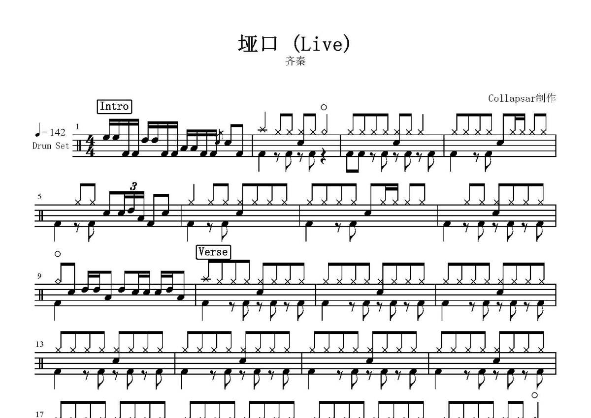 《垭口》是齐秦演唱的一首歌曲,这份鼓谱共有六张高清图谱,图谱由 @打鼓谱 编配上传,图谱使用五线谱编配,使用这份垭口架子鼓谱,你将能够轻松地敲打出这首齐秦的垭口,快来尝试吧。《垭口》是齐秦创作并演唱的流行摇滚歌曲,收录于1985年发行的《狼的专辑》。2014年重新演绎的《垭口2014》,增添了新的音乐生命力。 。