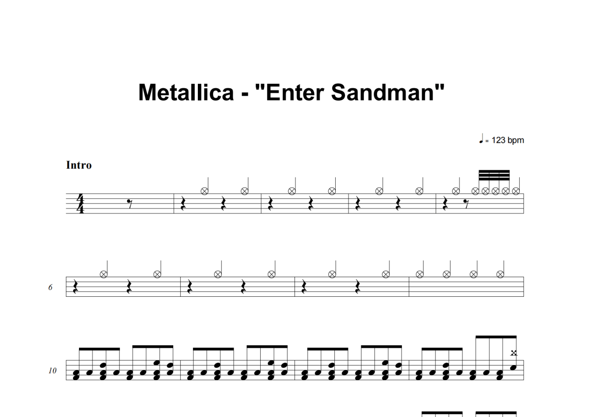 Metallica金属乐队《Enter Sandman》鼓谱 - 架子鼓谱