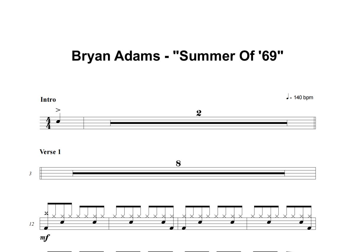 Bryan Adams《Summer of 69》鼓谱 - 架子鼓谱