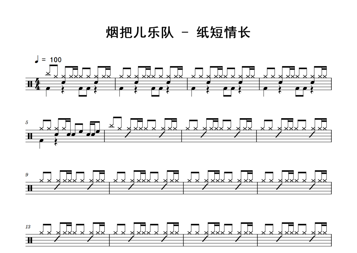 烟把儿乐队《纸短情长》鼓谱 - 架子鼓谱