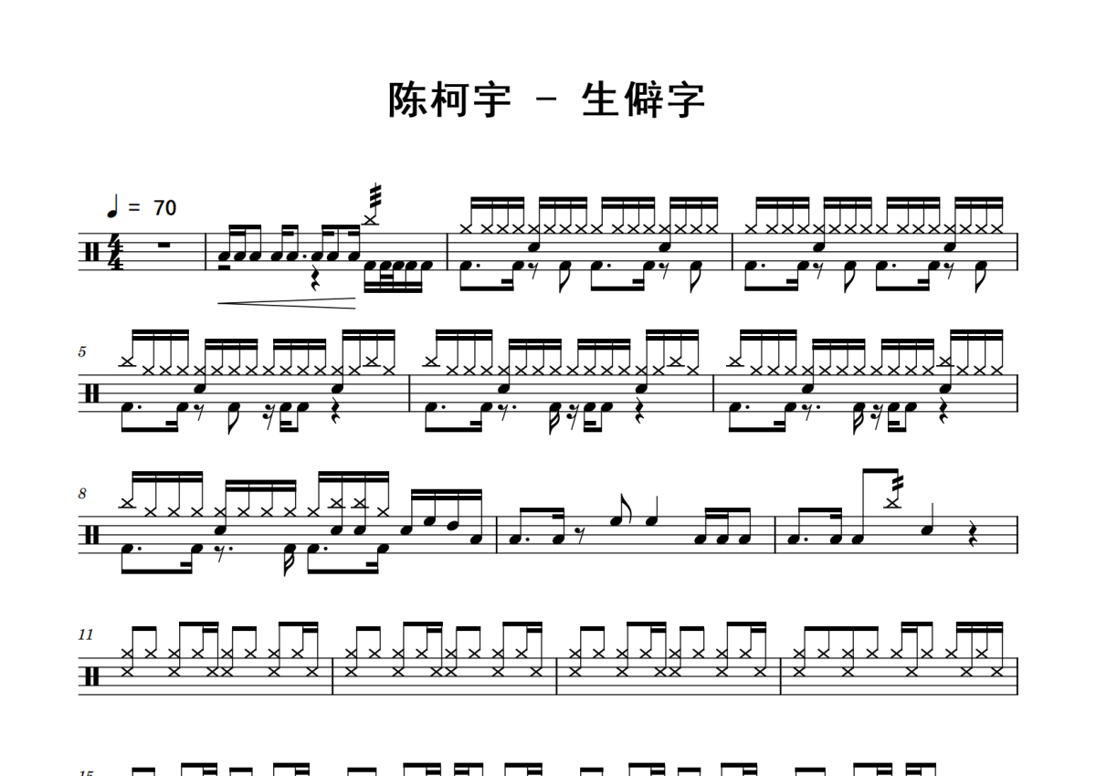 陈柯宇《生僻字》鼓谱 - 架子鼓谱