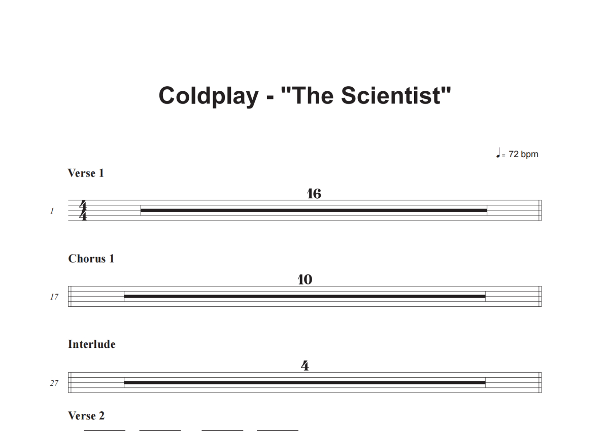 Coldplay《The Scientist》鼓谱 - 架子鼓谱