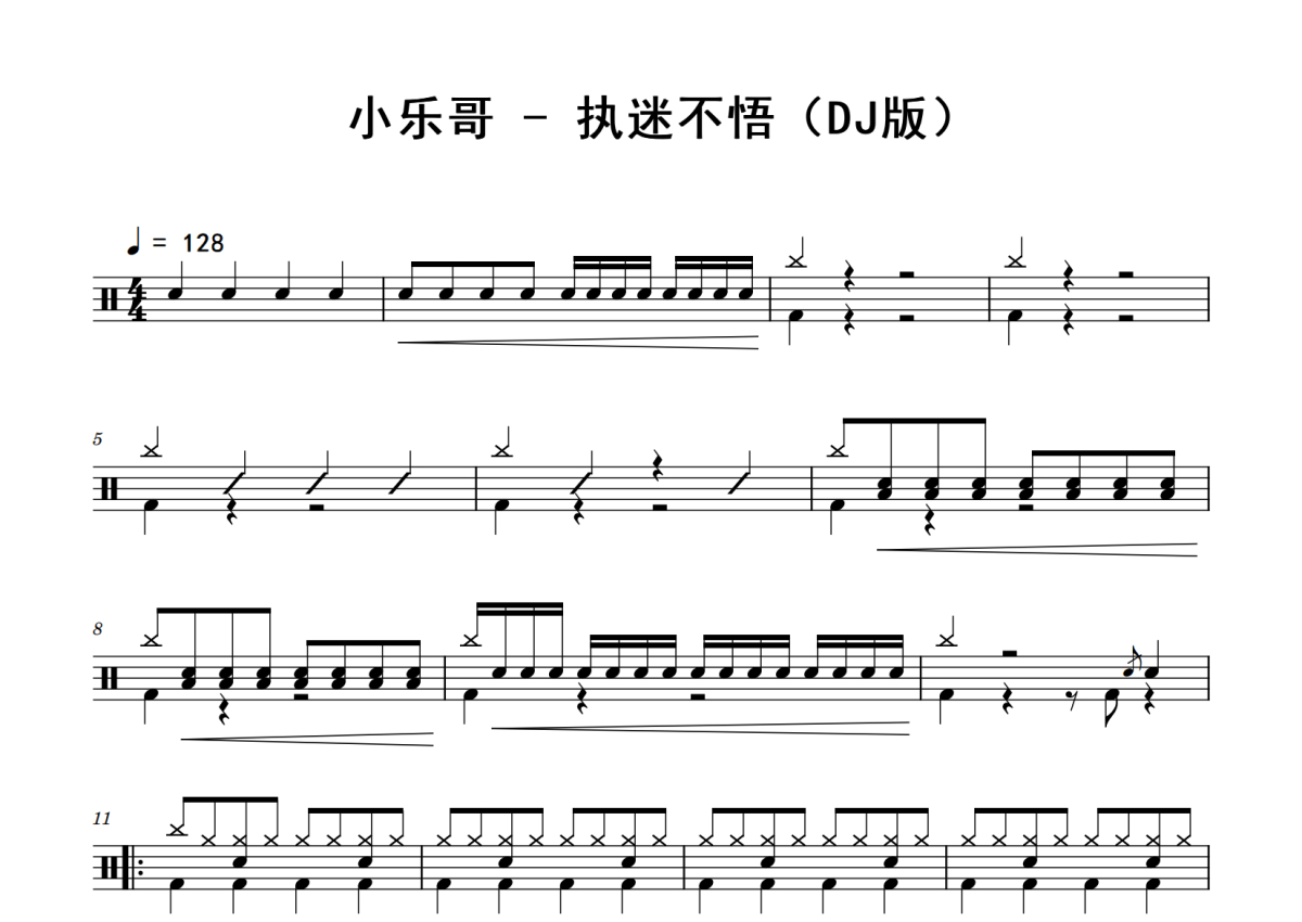 小乐哥《执迷不悟》鼓谱 - 架子鼓谱 - DJ版