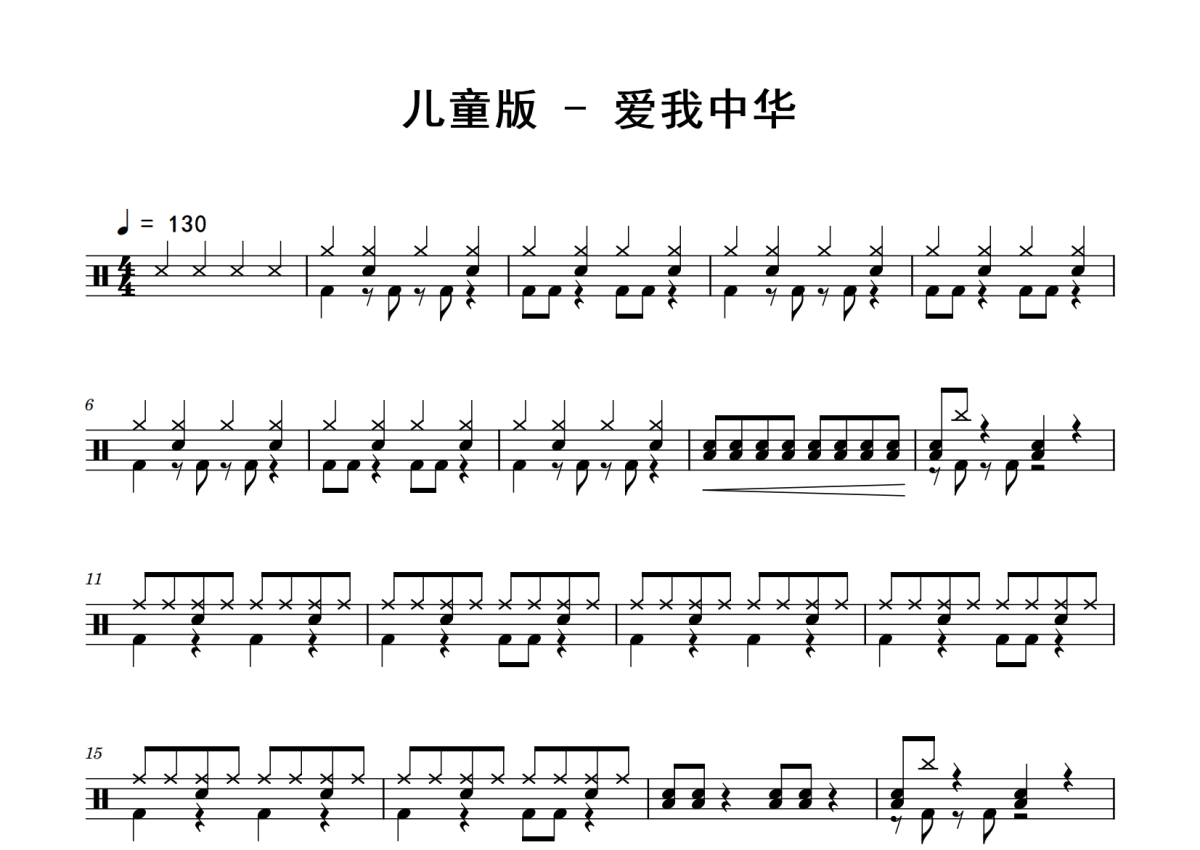 儿童版《爱我中华》鼓谱 - 架子鼓谱